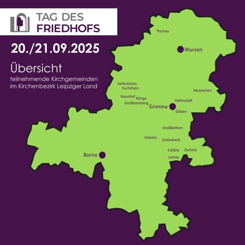 In diesem Jahr werden sich auch Friedhofsträger im Ev.-Luth. Kirchenbezirk Leipziger Land an dieser Aktion beteiligen. Ziel ist es, unsere kirchlichen Friedhöfe in ihren besonderen und wertvollen vielfältigen Funktionen verstärkt in das Blickfeld der Öffentlichkeit zu rücken. Die Friedhöfe sollen vorgestellt und erlebbar werden: